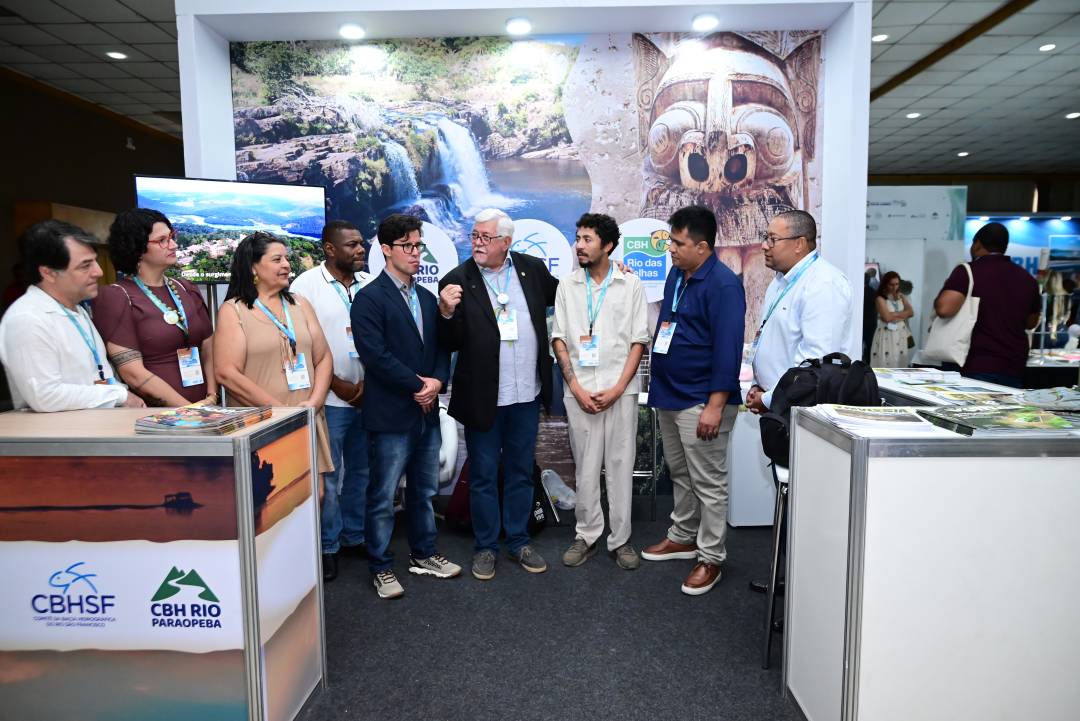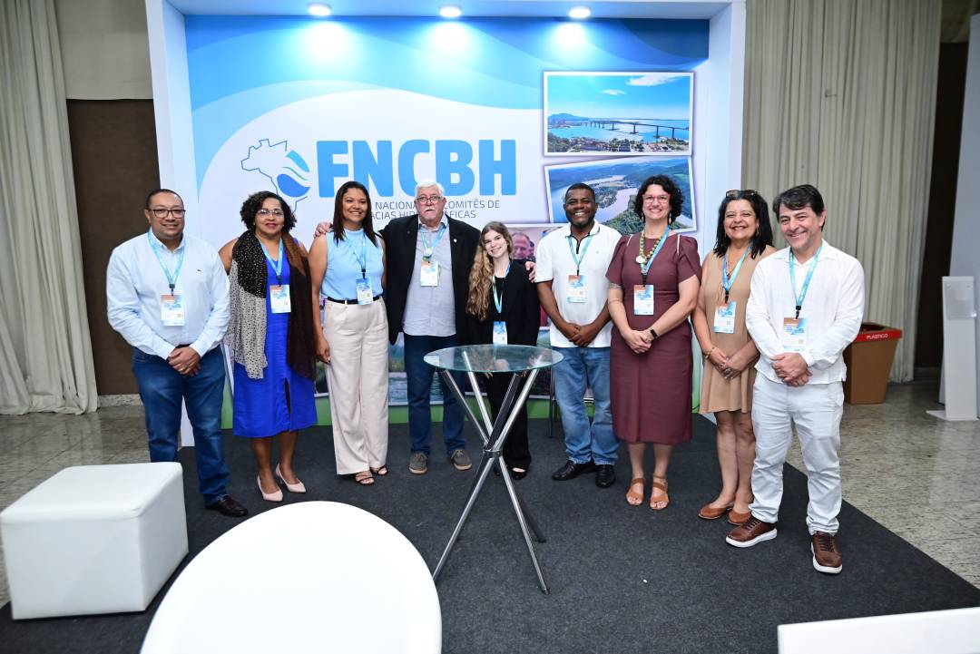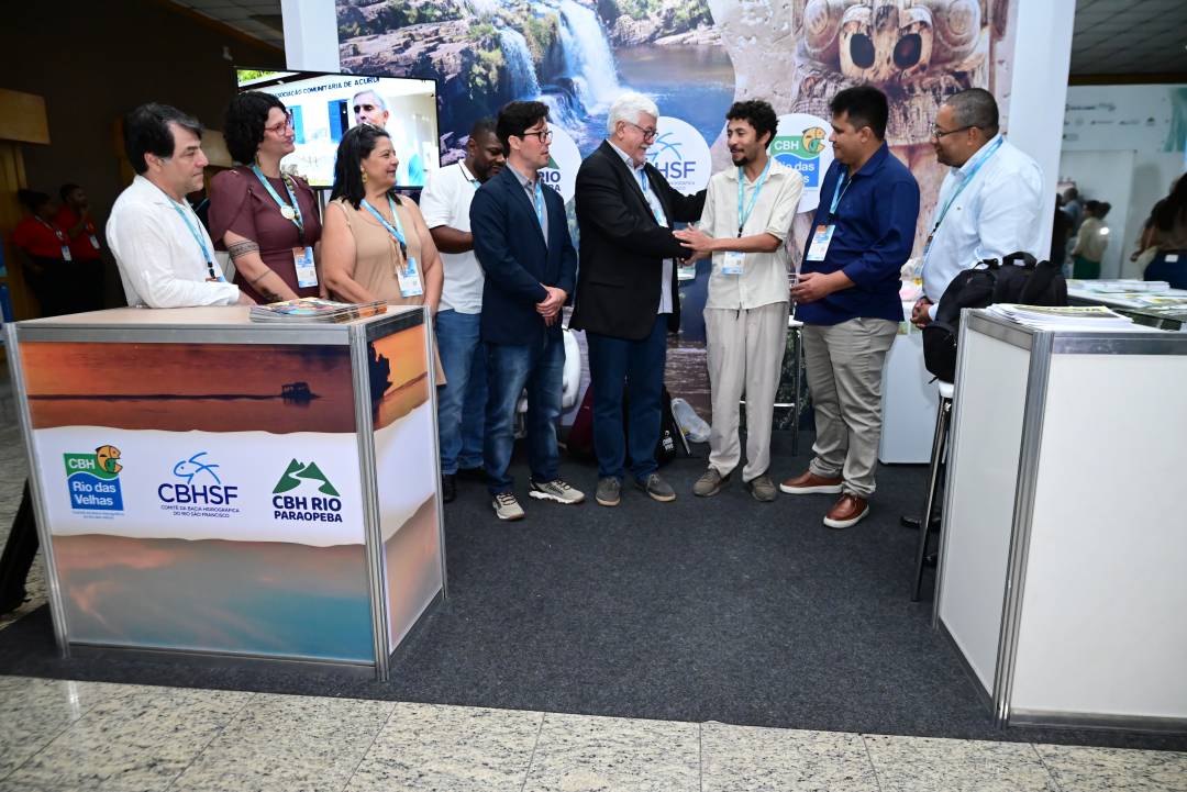 O Coordenador-Geral do FNCBH, Maurício Marques Scalon, visitou todos os estandes, reforçando o compromisso institucional com os Comitês e com os parceiros que atuam na promoção da governança hídrica.